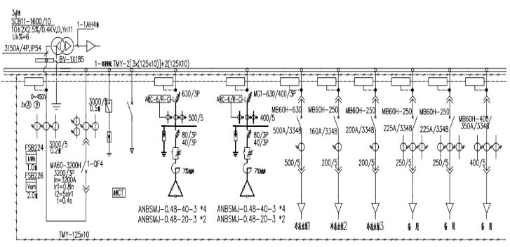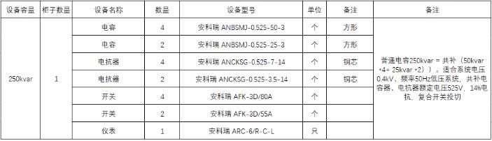 根據(jù)圖紙選擇合適的配置方案:250kvar=50kvar *4 +25kvar *2,電抗率14%。