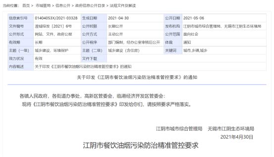 [1] 《江陰市餐飲油煙污染管控要求》