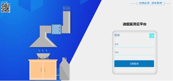 在瀏覽器打開平臺鏈接、輸入賬戶名和權限密碼,進行登錄,防止未授權人員瀏覽有關信息。掃描左上角二維碼下載油煙監測管家APP,可在移動端進行日常管理。