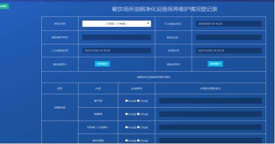 記錄油煙凈化設備的維護保養情況,實現線上、線下聯動。