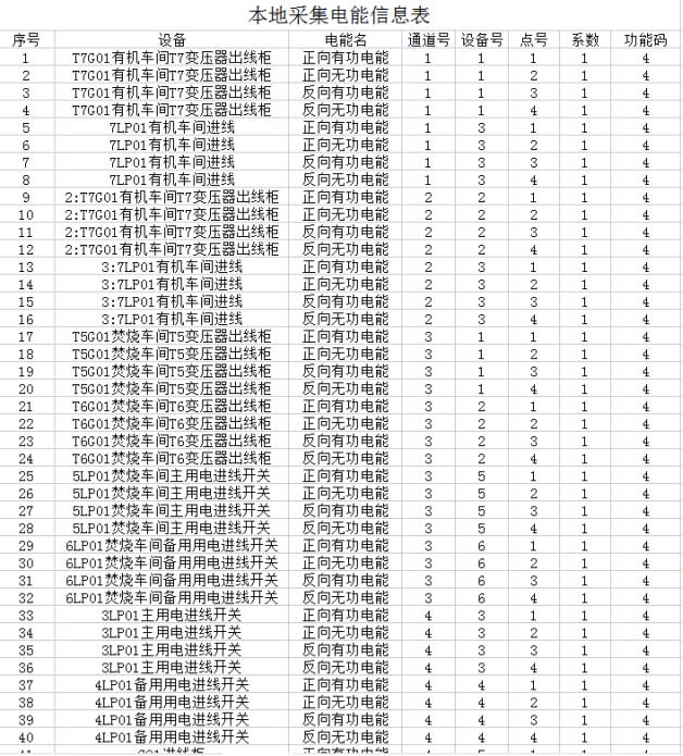 變電站綜合自動化系統需采集設備數量共計34臺,本地設備根據數據類型主要分為遙測、遙信、電能三類數據,部分數據展示如下: