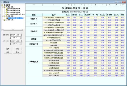 能查詢各回路或設備指定時間的運行參數,報表中顯示電參量信息應包括:各相電流、三相電壓、總功率因數、總有功功率、總無功功率、正向有功電能等。