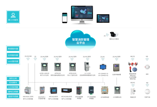 感知層:連接于網(wǎng)絡(luò)中的各類傳感器,包括水位水壓傳感器、故障電弧探測(cè)器、智慧用電在線監(jiān)控裝置、煙感、氣感、手報(bào)等。