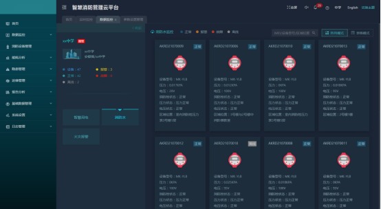 平臺(tái)接入消防栓、消防水壓、水位傳感器等,用于實(shí)時(shí)的監(jiān)控消防水管網(wǎng)的壓力、液位、是否漏水,以及開蓋等事件,當(dāng)消防水壓不夠,管網(wǎng)漏水時(shí),系統(tǒng)也能實(shí)時(shí)地發(fā)出警報(bào),能讓相關(guān)人員及時(shí)維修維護(hù),保障消防隱患。在主管網(wǎng)安裝壓力傳感器,實(shí)時(shí)采集主管網(wǎng)實(shí)時(shí)壓力信息;在各閥門處安裝傳感器,實(shí)時(shí)采集閥門開閉狀態(tài)信息;在水箱安裝感知器,實(shí)時(shí)采集水箱水量信息;在末端試水裝置安裝壓力傳感器,實(shí)時(shí)采集末端實(shí)時(shí)壓力信息。系統(tǒng)通過分析數(shù)據(jù)信息,快速發(fā)現(xiàn)異常及故障,很好得減少消防水現(xiàn)場(chǎng)檢查次數(shù)、降低工作強(qiáng)度、提高工作效率,保障消防水系統(tǒng)在火災(zāi)發(fā)生時(shí)發(fā)揮作用。并根據(jù)現(xiàn)場(chǎng)需求,能夠設(shè)置液位或者壓力的上下限閾值。當(dāng)超出閾值范圍,就會(huì)報(bào)警提醒學(xué)校保衛(wèi)處人員。