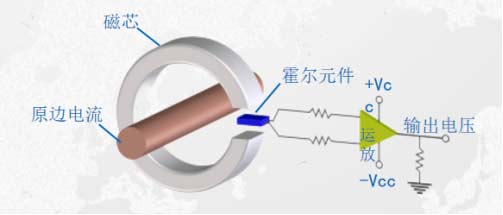 霍爾電流傳感器以霍爾元件為核心,用于隔離檢測電流的傳感器。當電流流過一根導線時,將在導線周圍產生磁場,磁場的大小與流過導線的電流大小成正比,這一磁場可以通過軟磁材料來聚集,然后由霍爾元件來檢測,用霍爾元件在磁芯氣隙處感應原邊電流IP的大小和方向。霍爾元件的輸出電壓,經過信號處理電路,使傳感器的輸出可以反映被測電流的大小。