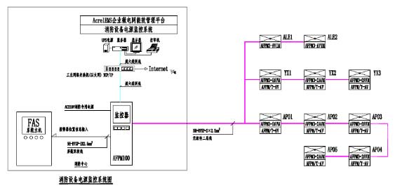 根據(jù)用戶的需求,還可以滿足與AcrelEMS企業(yè)微電網(wǎng)能效管理平臺(tái)或者火災(zāi)自動(dòng)報(bào)警系統(tǒng)進(jìn)行數(shù)據(jù)交換及共享,整個(gè)系統(tǒng)設(shè)計(jì)方案如下圖: