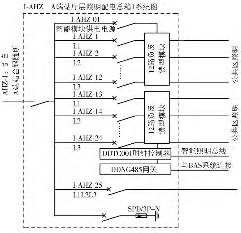 圖1某標準地鐵站照明配電總箱系統(tǒng)圖