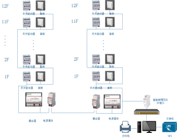 站控管理層:設(shè)有高性能工業(yè)計算機、顯示器、UPS電源、打印機等設(shè)備。監(jiān)控系統(tǒng)安裝在計算機上,集中采集顯示現(xiàn)場設(shè)備運行狀況,以人機交互的形式顯示給用戶。 以上開關(guān)模塊均采用KNX總線傳輸,一般都采用4根連線,接線簡單方便,傳輸距離可達1.2km。