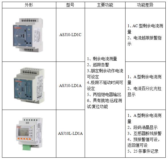 ASJ系列產(chǎn)品主要有兩種安裝方式,ASJ10系列為導(dǎo)軌安裝,外形和功能如下表所示: