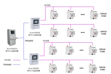 故障電弧集中顯示單元對(duì)接入線路中的故障電弧傳感器進(jìn)行統(tǒng)一檢測(cè)。故障電弧傳感器可以對(duì)故障電弧(包括故障并聯(lián)電弧、故障串聯(lián)電。┻M(jìn)行合理的檢測(cè),當(dāng)檢測(cè)到線路中存在引起火災(zāi)的故障電弧時(shí),顯示單元可以進(jìn)行現(xiàn)場(chǎng)的聲光報(bào)警,并將報(bào)警信息傳輸給電氣火災(zāi)監(jiān)控設(shè)備。集中顯示單元可同時(shí)通過對(duì)配電回路的剩余電流、導(dǎo)線溫度等火災(zāi)危險(xiǎn)參數(shù)實(shí)施監(jiān)控和管理。