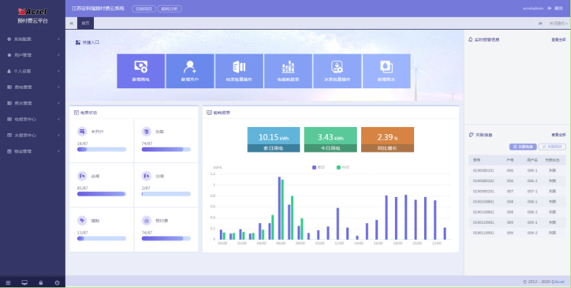 對于分布不同省、地市或同地市不同區(qū)域的連鎖商業(yè)、集團、百貨、門店、物業(yè)、院校等業(yè)務分散,要求集中管理、線上支付,低額提醒、欠費告警。但常規(guī)的本地插卡付費、本地預付費并不能完全滿足客戶管理需求,預付費云平臺應運而生。AcrelCloud-3200水電預付費云平臺無縫集成商業(yè)、物業(yè)公司、集團企業(yè)、院校等分散布置的安科瑞DDSY/ADF系列電子式預付費電能表、閥控智能水表等,提供微信、支付寶、銀聯(lián)等可選的在線支付方式,大大方便了用戶充值、圈存,提供預警和充值、退費、電能消耗等記錄查詢,方便用戶和管理方的數(shù)據(jù)統(tǒng)計和財務分析,提供先交費后使用的管控機制,大大降低了管理部門的收費成本。