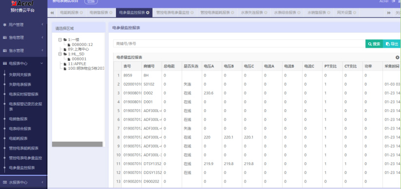 抄表信息通過網(wǎng)關(guān)實時上傳到云平臺,快速便捷,免去人工抄表;財務集中管理,電量零售躉賣,支持一戶一電價,一戶一水價。